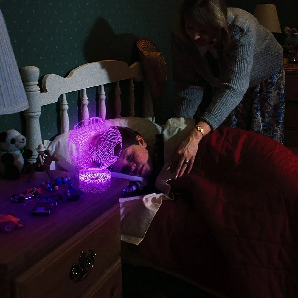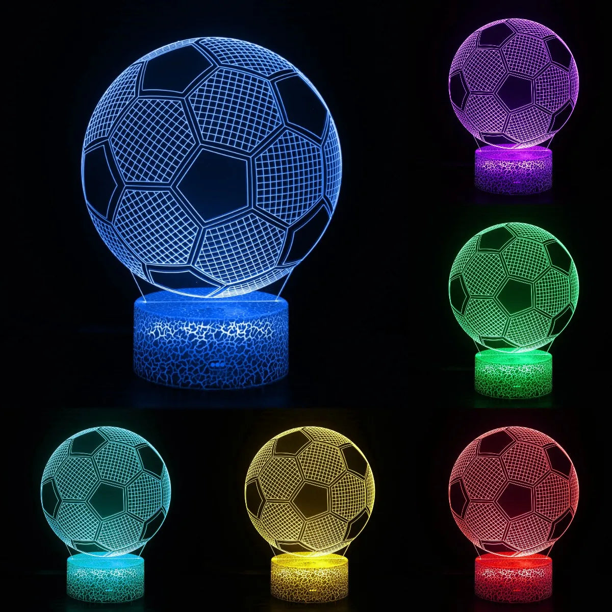 مصباح ليلي ثلاثي الأبعاد LED كرة قدم 7 ألوان