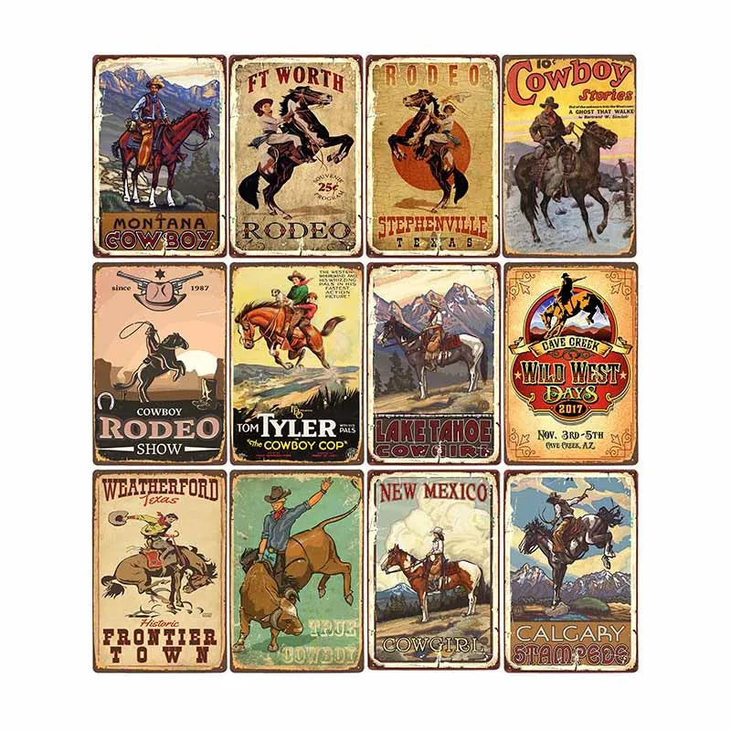 لوحة حائط معدنية ريترو كاوبوي 20x30 سم