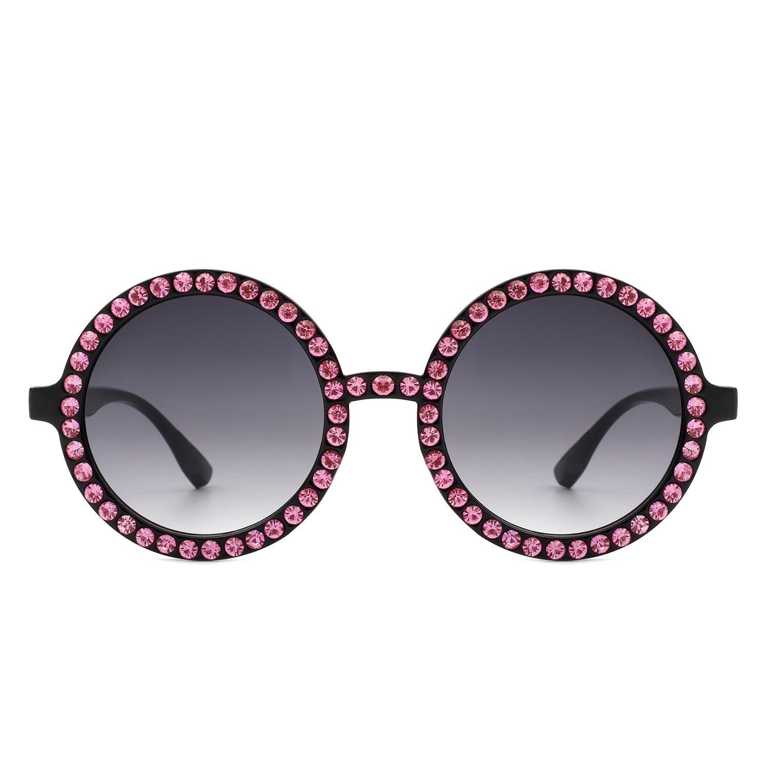 نظارات شمسية دائرية نسائية بأحجار لامعة