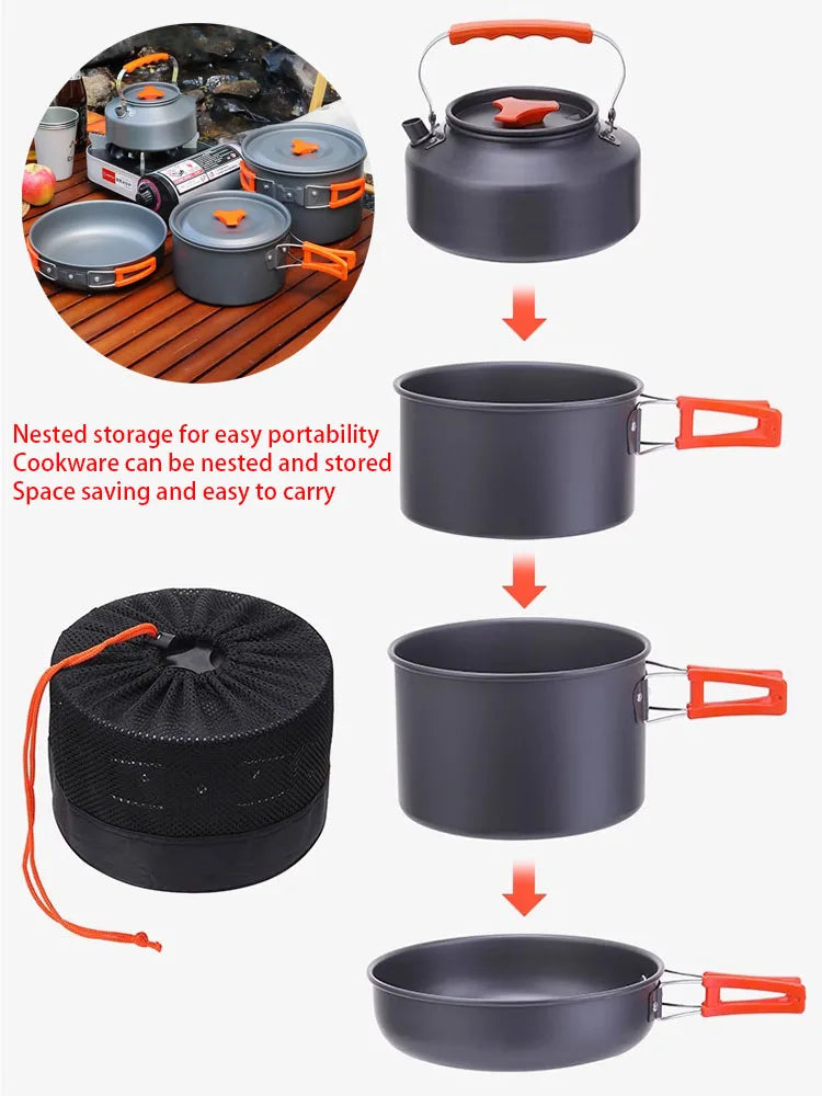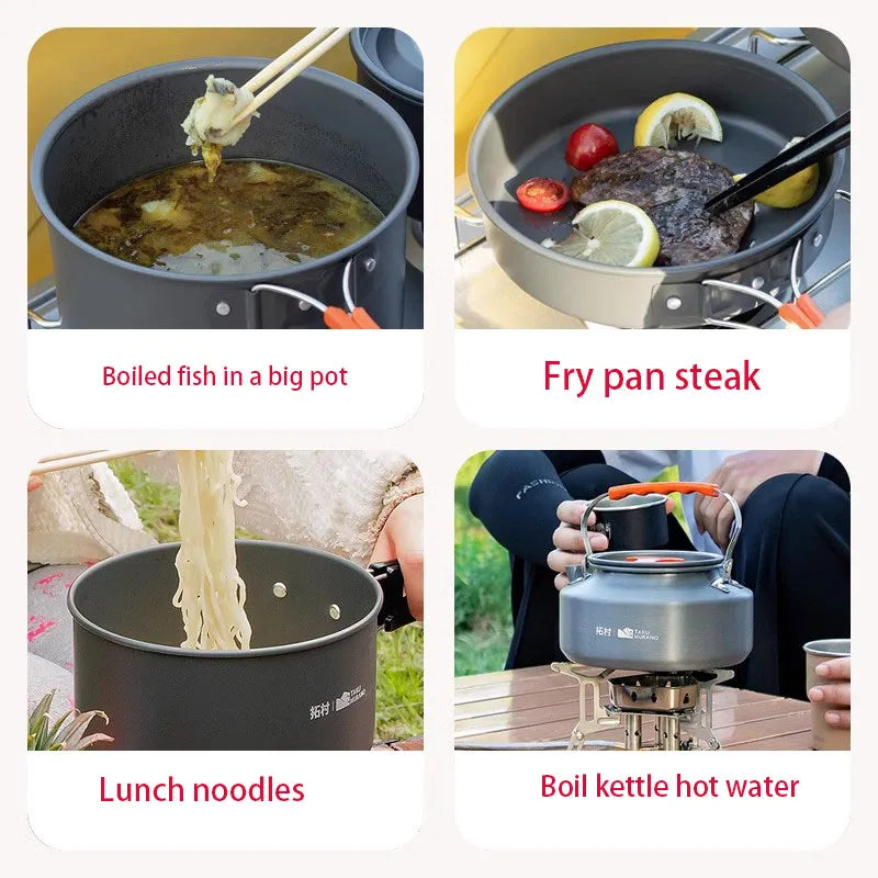 أدوات طبخ ألمانية للتخييم مع موقد وغلاية