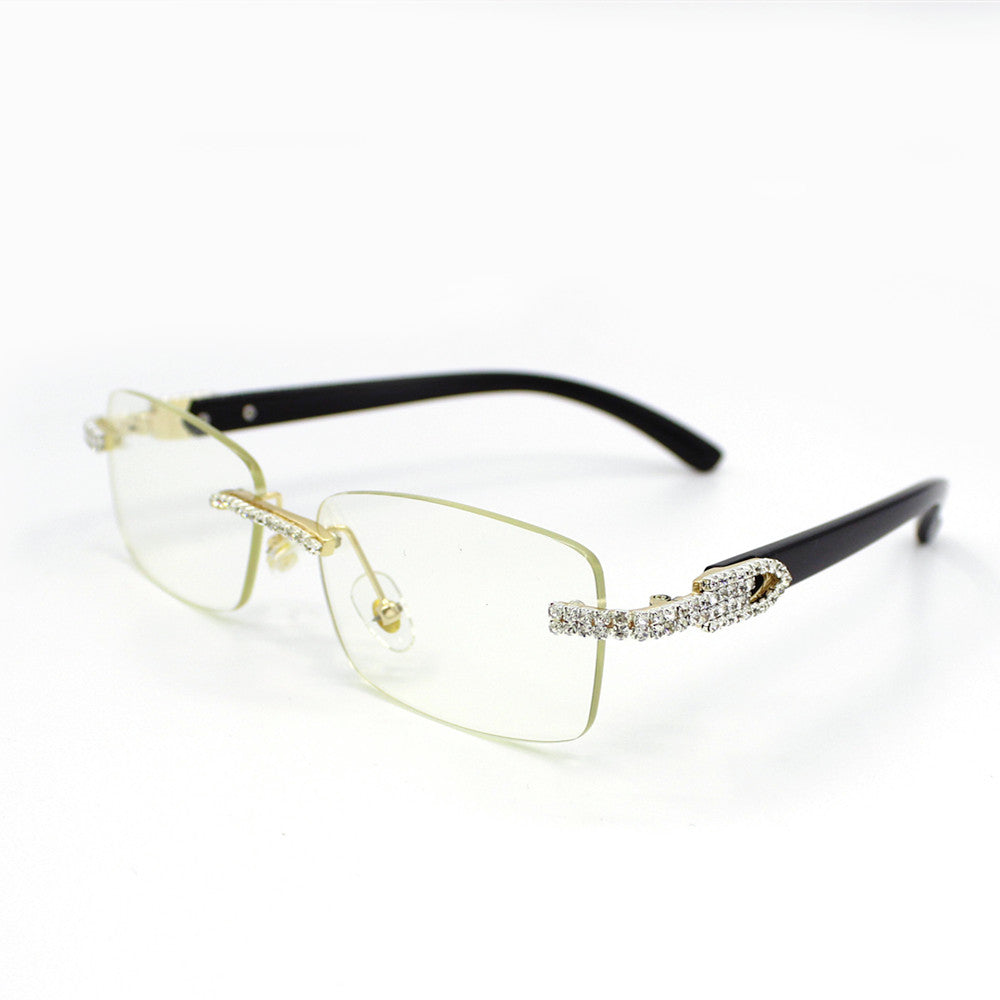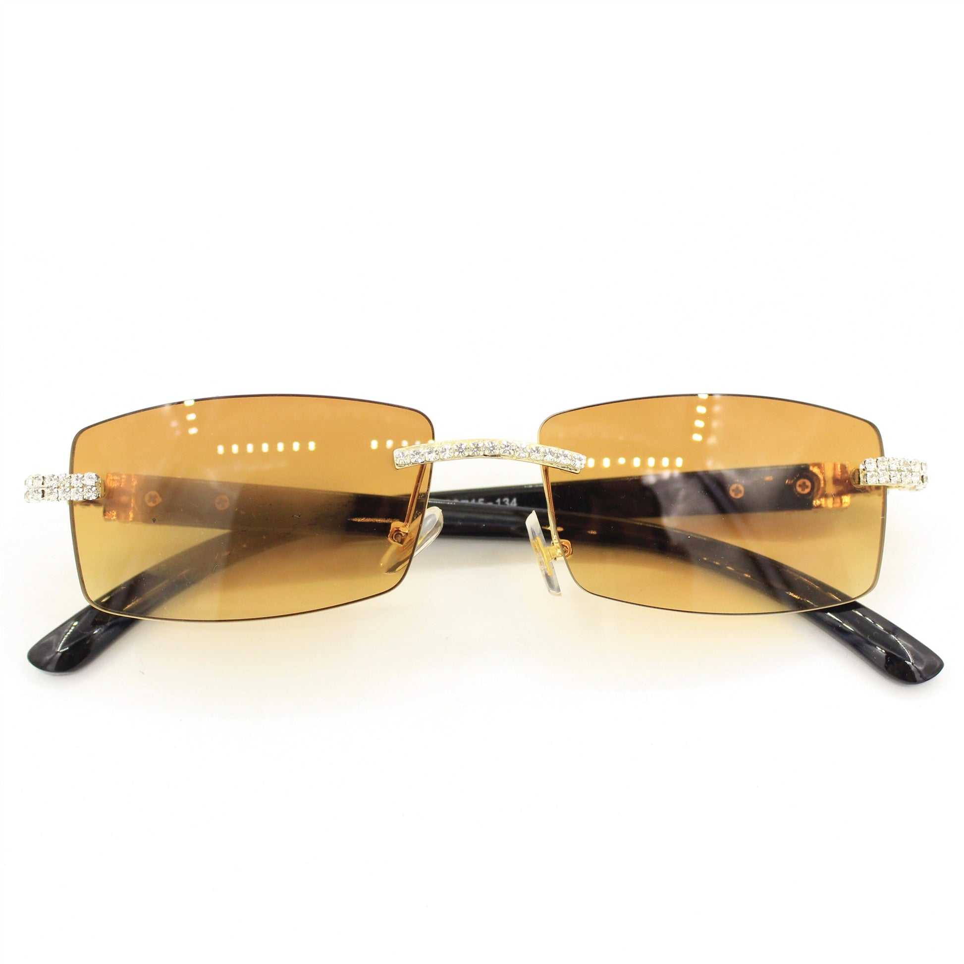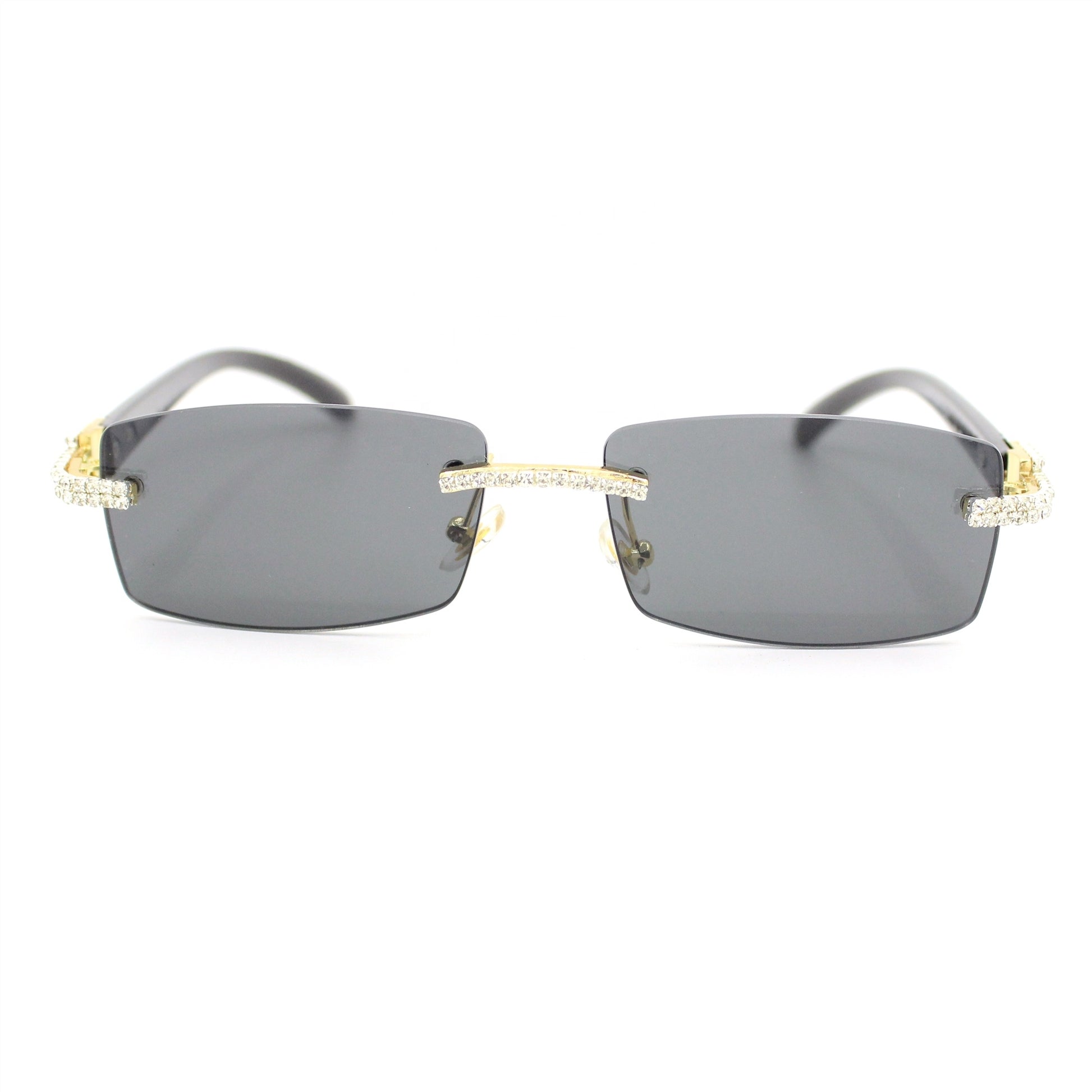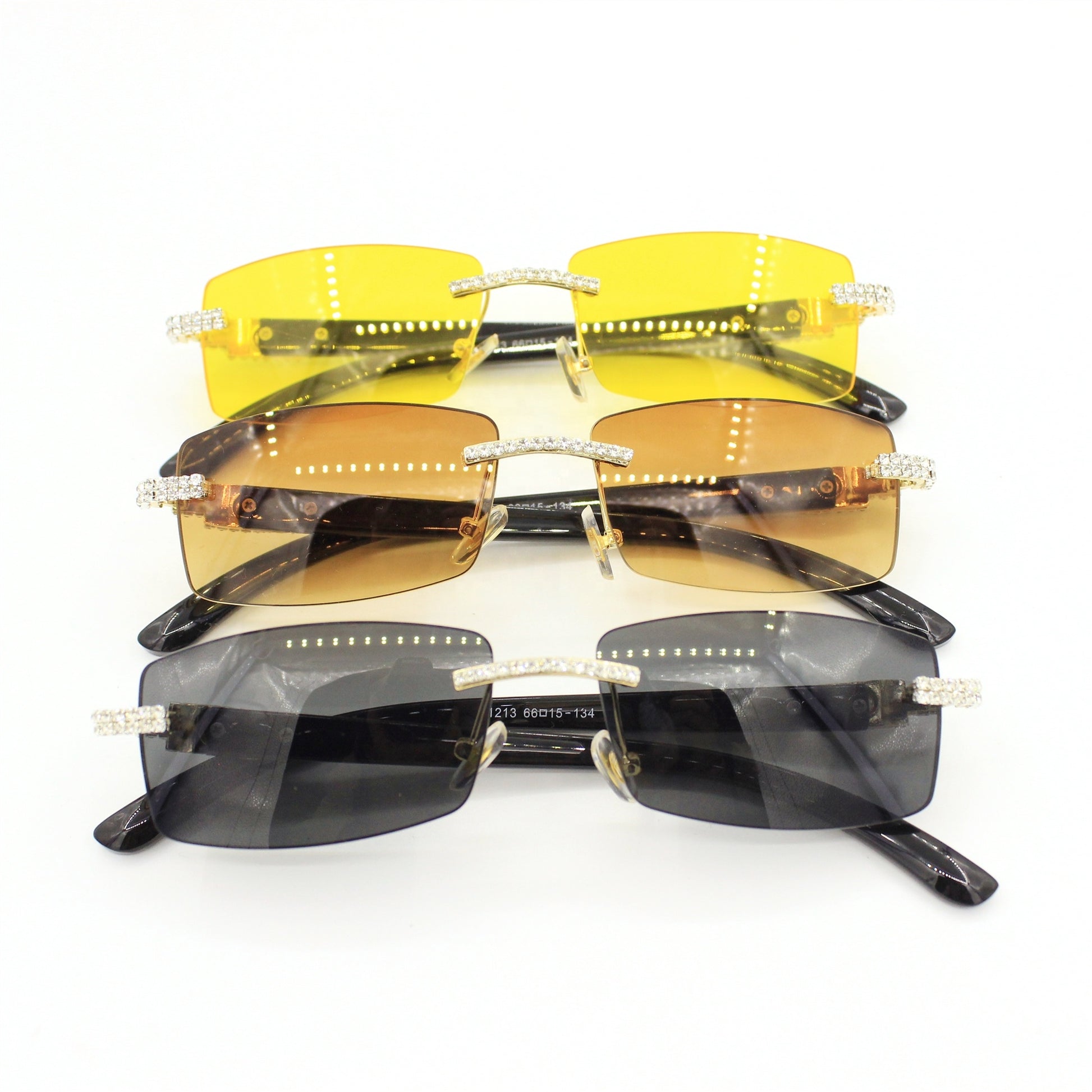 اكتشفوا الأناقة الفاخرة مع نظارات شمسية مزينة بأحجار الراين، مصنوعة من قرون الجاموس والخشب الفاخر. هذه النظارات الشمسية بدون إطار مصممة للرجال الذين يقدرون الفخامة والتميز في كل تفاصيل إطلالتهم.